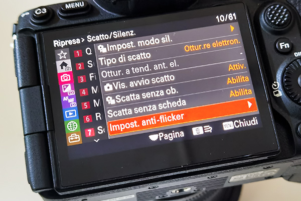 Con 1/60s il problema è sparito. Si poteva anche provare con 1/120s, 1/180s oppure con quelli del 50 come 1/50, 1/100, 1/150 e via dicendo. Tutto questo se non siete soddisfatti del sistema anti flicker offerto dalla camera. Nel nostro caso abbiamo preferito non perdere tempo cercando nei menù (avevamo la macchina da pochissimo). Quindi metodo "alla vecchia maniera", e via.