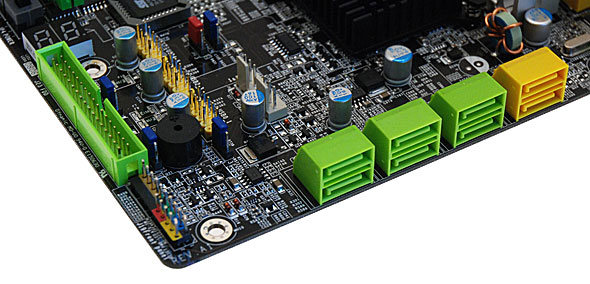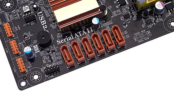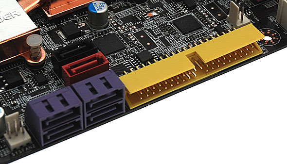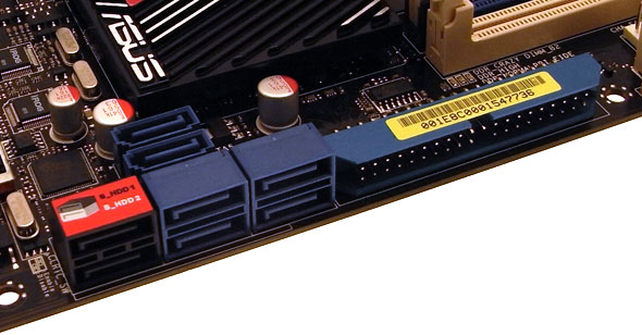 Per la connessione dei dischi e delle unità ottiche, la scheda madre mette a disposizione le consuete 6 porte SATA II, gestite dal South Bridge e configurabili in modalità RAID 0, 1, 5 o 10. Onboard troviamo inoltre un controller Ultra DMA 133 che si occupa di gestire l'unico canale Parallel ATA presente.