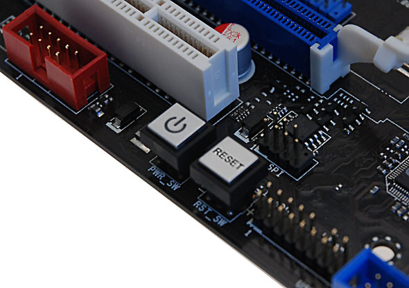 Immancabile infine la presenta dei pulsanti Power On e Reset direttamente onboard, che pur non essendo indispensabili, risultano decisamente apprezzati dagli utenti più appassionati; la presenza di questi pulsanti, unita a quella degli altri strumenti per la diagnostica, costituisce certamente interessante valore aggiunto per questo prodotto.
