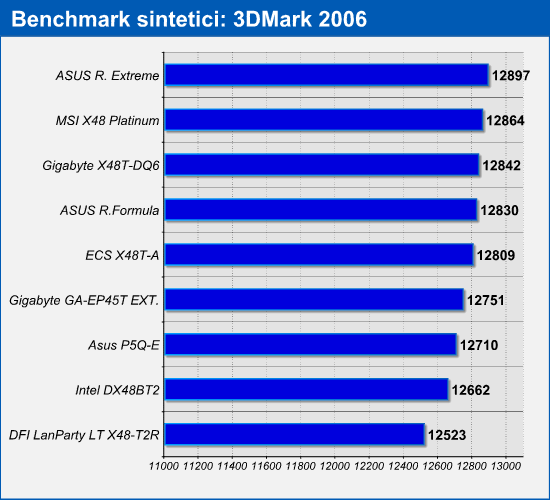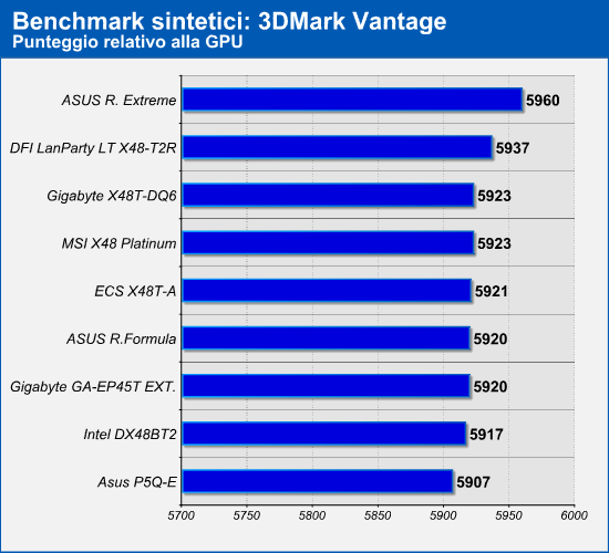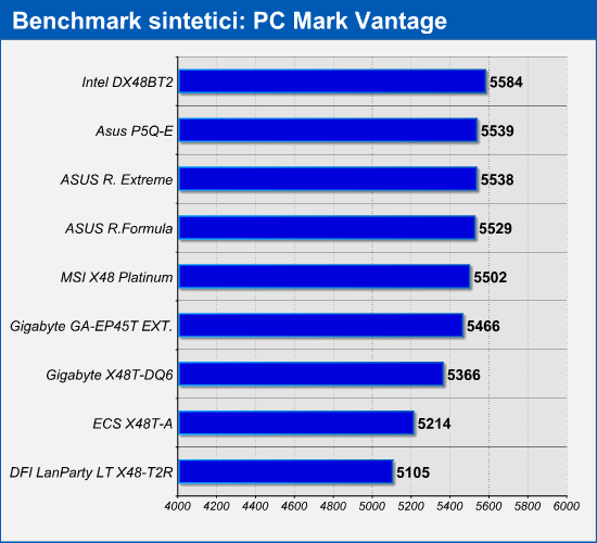 I risultati ottenuti dai benchmark non decretano un vincitore in modo univoco e risultano piuttosto altalenanti. L'Intel DX48BT2 ad esempio ha fatto segnare i risultati migliori nel benchmark PC Mark Vantage, salvo piazzarsi poi nelle ultime posizioni negli altri benchmark. Anche in questa occasione le schede madri X48 non riescono a distanziare in modo netto l'Asus P5Q-E e la Gigabyte GA-EP45T Extrmeme, entrambe basate sul chipset P45 Express.