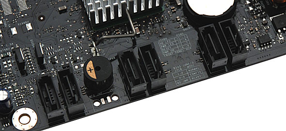 Dalla precedente foto, si nota inoltre la presenza di un piccolo display che si occupa di fornire all'utente alcune sintetiche informazioni sullo stato del sistema: si tratta di uno strumento che si rivela decisamente utile nella risoluzione di problemi, come ad esempio quelli che possono verificarsi durante una prova di overclock del sistema.