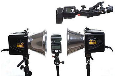 3.Esterni a torcia: hanno le stesse peculiarità dei flash cobra ma dispongono di una maggiore potenza luminosa che viene assicurata da un’unità di alimentazione separata. Proprio per questo motivo il loro peso è discreto e viene sostenuto non dalla slitta, ma da una staffa laterale; cosa che per altro permette di ridurre l’odiato effetto occhi rossi ed illuminare una porzione più ampia della scena.
