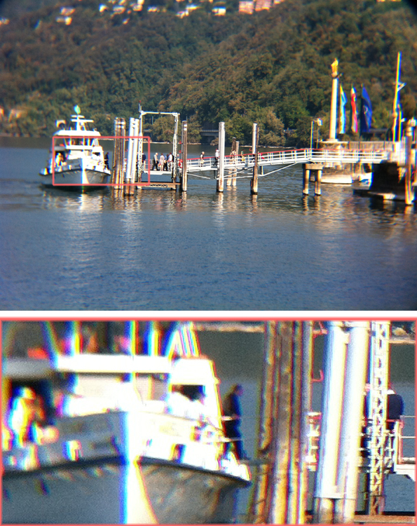 Naturalmente relativamente alla resa ai bordi non ci aspettavamo grandi risultati: a dire il vero nella realtà dei fatti l'ottica Rollei verso i lati destro e sinistro e negli angoli si comporta peggio di quanto avessimo ipotizzato. Il calo di nitidezza è molto evidente, ma sono soprattutto le aberrazioni cromatiche a inficiare negativamente le immagini, tanto evidenti da creare piccoli arcobaleni laddove si registrino passaggi ad alto contrasto.