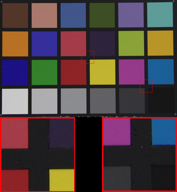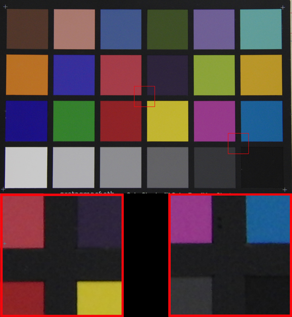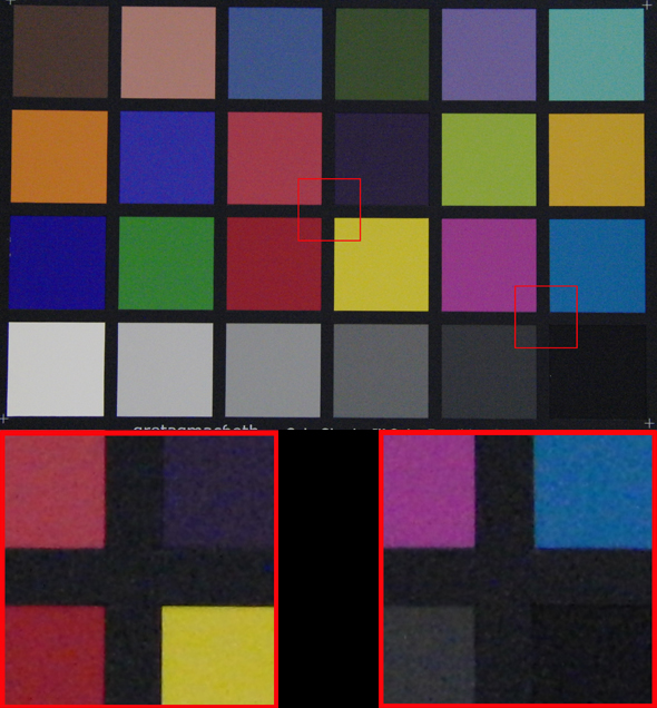 La F1 ha la possibilità di sovrimporre alle immagini a display l'istogramma ed il monitor presenta a schermo l'effetto ottenuto con una determinata esposizione. Viste le potenzialità di questa Casio, un semplice cursore graduato sarebbe di certo gradito. Pagina 5 - Prova sul campo - Foto 2 L'analisi alle Gretag Map presenta un buon contenimento del rumore; la sensibilità è impostabile da 100 a 1600 ISO. Di seguito le Gretag con i particolari ingranditi al 200%