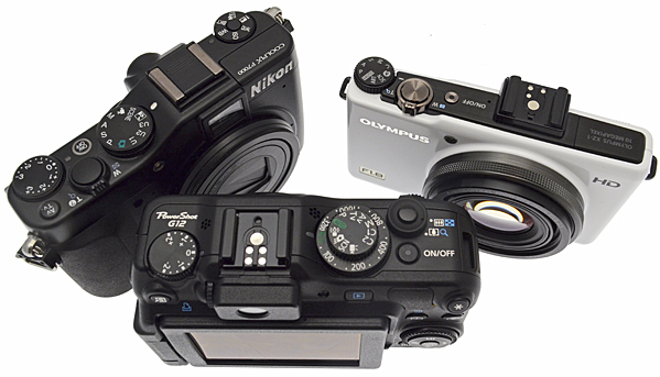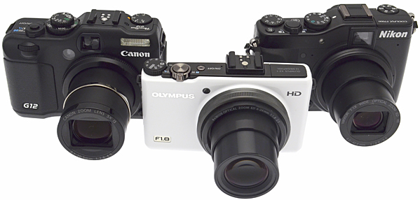 Nikon Coolpix P7000 è il più vecchio dei tre prodotti e a settembre compirà un anno: ha sancito il ritorno di Nikon nel segmento delle compatte premium con slitta flash esterna dopo un periodo in cui il colosso giapponese ci aveva creduto poco. In rete la fotocamera è disponibile con prezzi compresi tra circa €375 e €400. Canon PowerShot G12 ha rimpiazzato il precedente modello PowerShot G11 a poco più di un anno dalla presentazione, correggendo il tiro di un prodotto dalle buone potenzialità, ma con qualche mancanza. Del lotto è l'unica ad avere un display orientabile, particolare che in molti trovano molto comodo, ma è anche la più cara, con prezzi compresi tra €439 e €469 in rete. Olympus XZ-1 segna l'ingresso del produttore giapponese nel segmento delle compatte premium, dopo alcuni modelli molto convincenti degli albori del digitale. Si tratta di un prodotto figlio anche dell'esperienza EVIL accumulata da Olympus con le sue PEN, tanto da essere l'unica compatta della casa nipponica a fregiarsi del marchio Zuiko, generalmente dedicato alle ottiche intercambiabili. Presentata a gennaio, dopo alcuni teaser al Photokina, è disponibile in rete a prezzi da €399 a €439 e offre un display OLED dalla buona leggibilità anche in esterni.