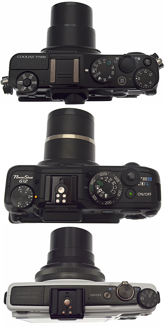 Nikon Coolpix P7000, Canon PowerShot G12 e Olympus XZ-1 sono tre compatte premium, quella fascia che punta ad attirare il pubblico alla ricerca di una qualità maggiore rispetto alle solite compatte da scaffale, ma che non vuole rinunciare alla portabilità della fotocamera e per cui mirrorless e reflex sono troppo ingombranti. Il pubblico di riferimento è anche quello che vuole accoppiare alla sua reflex una macchina di dimensioni più contenute, ma che offra la flessibilità dei file RAW, ottica di buona qualità e una resa dell'immagine almeno più che sufficiente. Si tratta di una fascia di mercato con parziale sovrapposizione con il fenomeno del momento, le mirrorless che grazie ad alcuni riposizionamenti di prezzo hanno visto alcuni modelli da più tempo sul mercato scendere sotto i 400 euro nei kit con obiettivo standard.