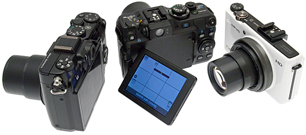A livello di schermo le tre macchine hanno optato per filosofie differenti: Canon ha scelto una risoluzione più bassa ma rendere l'elemento snodato, Olympus ha percorso la strada della tecnologia OLED per ampliare l'angolo di visione, Nikon ha puntato invece sulla massima risoluzione. Il massimo sarebbe stato unire le tre vie in un unica soluzione, ma i costi sarebbero lievitati. Le macchine sono stabilizzate nell'ottica nel caso di Canon G12 e Nikon P7000, mentre Olympus ha optato per stabilizzare il sensore. Olympus XZ-1, tra le tre, è l'unica che integra un pulsante di avvio diretto della registrazione video, le altre due proposte richiedono invece di ruotare la ghiera dei modi per selezionare la modalità filmato e poi la pressione del tasto di scatto. Anche in questo frangente i modelli Canon e Nikon tradiscono un'impostazione figlia della tradizione fotografica, mentre la fotocamera Olympus rende evidente la sua derivazione dal mondo consumer. A livello di ottica troviamo un ulteriore punto di differenziazione: sebbene tutti e tre gli obiettivi partano da una focale di 28mm equivalenti, hanno un'estensione diversa. Olympus XZ-1 è quella che si ferma prima (a 112mm equivalenti, pari a zoom 4x), ma offre una luminosità maggiore su tutta l'escursione (1:1.8-2.5); Canon e Nikon hanno obiettivi da F2.8 di apertura massima con rispettivamente focale equivalente 140mm (5x) e e 200mm (7.1x), con diaframma massimo f/4.5 e f/5.6. Alla focale minima inoltre la proposta Olympus offre la modalità super-macro, con messa a fuoco a meno di 1cm dalla lente frontale, mentre per Canon G12 bisogna superare il centimetro di distanza e per Coolpix P7000 i 2cm. Le tre fotocamere offrono tutte un filtro ND attivabile da menu per diminuire la luce registrata dal sensore e permettere lunghe esposizioni anche in piena luce. A livello video le tre fotocamere offrono il supporto ai filmati 1280x720 pixel. Olympus e Canon permettono di applicare durante la fase di ripresa dei filmati alcuni filtri creativi, mentre i possessori di Coolpix P7000 devono accontentarsi di poter modificare il profilo colore, come avviene per le fotografie.