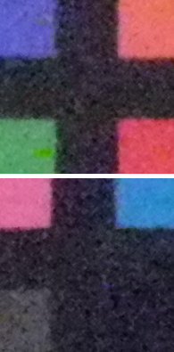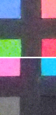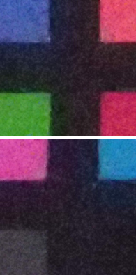 In modalità automatica Canon e Nikon non riescono a bilanciare la forte componente rossa delle lampade restituendo immagini molto calde, mentre Olympus XZ-1 riesce a contenere molto meglio la dominante. Sul preset Incandescenza/Tungsteno Olympus raffredda eccessivamente l'immagine, dandole un tono azzurrognolo, mentre le altre due macchine, soprattutto Canon G12, si avvicinano molto bene a un bianco corretto. Grazie alla premisurazione di un campione di bianco le tre macchine superano tutte di slancio ogni problema, restituendo fotografie ben bilanciate. Sempre utilizzando la stessa mira mettiamo a confronto le immagini delle tre fotocamere, riprese a tutti i valori di sensibilità ISO, con impostazioni standard di riduzione del rumore: