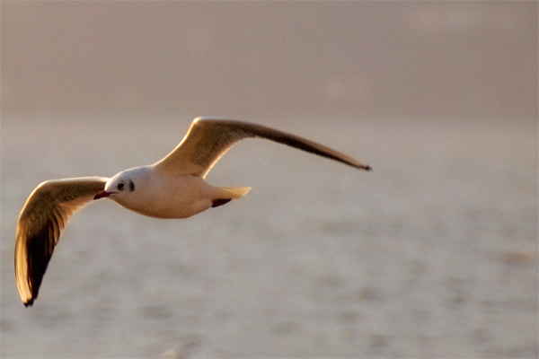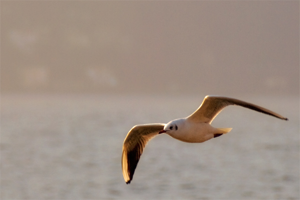 Prendiamo come modello un gabbiano, qui ritratto in volo e con uno sfondo uniforme per semplificare il discorso Questi due casi, è bene dirlo subito, non sono considerati particolarmente riusciti per il comune sentire fotografico. Il perché è presto detto. La prima immagine ritrae il gabbiano, e ci siamo, ma è priva di un un suo “svolgimento”. L'immagine sarebbe perfetta per un trattato di ornitologia, per intenderci. Troppo centrata e simmetrica. Alla seconda immagine va ancora peggio: si capisce, guardandola attentamente, che c'è qualcosa di "poco armonioso". Il gabbiano sembra andare a sbattere contro il lato sinistro dell'immagine e, pur rompendo la "fredda" simmetria della prima immagine, continua a non convincere. In base a un paio di regole, che vedremo nella prossima pagina, possiamo affermare che, potendo scegliere, l'immagine si sarebbe dovuta comporre come nell'immagine seguente: