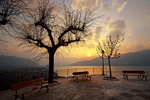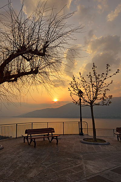 La stessa scena, in verticale, costringe a lasciare fuori dall'inquadratura alcuni elementi. Tendenzialmente, in ogni caso, il paesaggio è di solito ritratto in orizzontale, scegliendo l'orientamento verticale per altri soggetti, a meno che non si ricerchi un particolare (in questo caso la panchina) o altri elementi da far assurgere al ruolo di protagonista a scapito della visione globale.