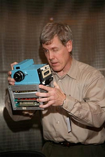 Sembra quasi incredibile che già allora, in un piccolo locale della Eastman Kodak Co., chiamata da sempre semplicemente Kodak, si muovessero i primi passi della fotografia digitale. Un progetto ambizioso, quasi folle, in anticipo sui tempi e abbandonato dopo poco tempo, nel timore che l'evoluzione tecnologica potesse far scomparire, in breve tempo, tutto il mondo che ruotava intorno alla pellicola, danneggiando in primis Kodak stessa. Eppure il seme da cui poi nacque la fotografia digitale fu piantato proprio allora, così come si riveleranno del tutto fondate le paure di Kodak, pur concretizzandosi decine di anni dopo. Ma torniamo in quella stanza, per capire cosa accadde. Pagina 2 - Joy Marshall, prima modella per foto digitali senza saperlo Non successe per caso, come è spesso accaduto per scoperte memorabili nel campo della scienza e tecnologia. Steve Sasson ai tempi lavorava come ingegnere nel reparto di ricerca di Kodak, e gli venne chiesto di creare qualcosa che potesse catturare immagini, utilizzando i sensori CCD (Charged Coupled Devices) da poco messi in commercio. Doveva capire, insomma, se potevano servire a qualcosa in ambito fotografico. Quello che ne uscì, dopo mesi di prove e tentativi, fu un buffo prototipo dal peso di circa 4 chilogrammi, in grado di catturare immagini digitali (sebbene all'epoca questo termine non veniva usato, preferendogli perifrasi di vario tipo). Le specifiche? Oggi fanno sorridere: risoluzione di "ben" 0,01 Megapixel (immagini 100x100 pixel!), il tutto memorizzato su un'audiocassetta posta su uno dei lati del macchinario.