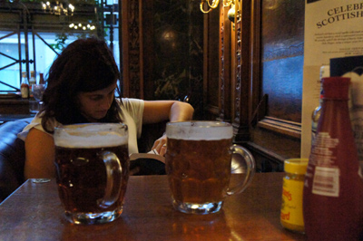 Dal crepuscolo in poi, ma anche nelle grigie giornate di Inghilterra e Scozia e negli interni, la piccola Sony NEX-5 sa tirare fuori armi a prima vista insospettabili. Le capacità di raffica a 7fps dell'accoppiata sensore CMOS più processore BIONZ e la gestione avanzata delle immagini permettono alla piccola CSC di scattare in ambienti bui con inaspettati risultati positivi, senza dover nemmeno scomodare il valore di sensibilità più elevato, pari a 12800. Per la cronaca quest'ultimo rappresenta solo un numerino da scrivere sulla scatola per favorire le strategie di marketing, mentre nella realtà risulta davvero poco utilizzabile, anche in casi di emergenza, come testimoniano le foto qui sotto. La scena è simile, il locale è lo stesso, il metodo di scatto utilizzato è invece profondamente diverso. La prima immagine è quella che classicamente si ottiene alzando al massimo il livello della sensibilità: sgranata, piatta, poco contrastata, zeppa di pixel con falsi colori, esposta al micromosso. La seconda invece è quella che la macchina ottiene in automatico impostando la modalità crepuscolo che scatta in rapida successione 6 fotografie con tempi di esposizione ridotti e poi le fonde a formare un'unica immagine. La macchina utilizza la sensibilità di 6400 ISO, ma riducendo il tempo di esposizione a piccole frazioni di secondo (il tempo di scatto di una foto normale diviso per sei) riesce a contenere molto bene l'insorgenza del rumore e del mosso.
