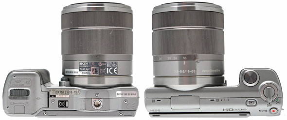 Le Sony NEX si sono presentate subito facendo leva sulla compattezza dei corpi macchina, caratterizzati da uno spessore particolarmente ridotto, grazie al tiraggio del nuovo sistema E-Mount, che con i suoi 18mm è il più piccolo del settore. Le dimensioni ridotte del corpo e l'utilizzo di un sensore di grosse dimensioni, formato APS-C, devono per forza però arrivare a un compromesso: questo si materializza nelle ottiche, caratterizzate da dimensioni quasi sproporzionate al corpo. L'obiettivo 18-55mm fornito in uno dei kit di vendita, ad esempio, è sì più piccolo dell'equivalente che equipaggia le Alpha del sistema reflex, ma è più grande delle ottiche di pari categoria del sistema Micro Quattro Terzi (Olympus e Panasonic).