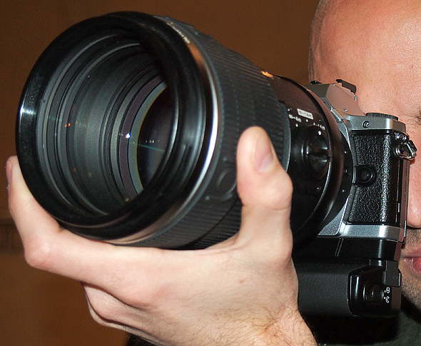 Tramite adattatore è possibile utilizzare (in questo caso con tutti gli automatismi, anche nella messa a fuoco) le ottiche del sistema reflex Quattro Terzi. Durante il breve contatto con la nuova OM-D E-M5 ho avuto modo di utilizzare il corpo in accoppiata all'ottica Quattro Terzi 150mm F2, un vero e proprio piccolo 'cannone' dalla focale equivalente di 300mm. Anche grazie all'impugnatura verticale il grosso barilotto dell'obiettivo non stona a confronto con il corpo macchina e anche dal punto di vista ergonomico non fa segnalare grossi problemi.