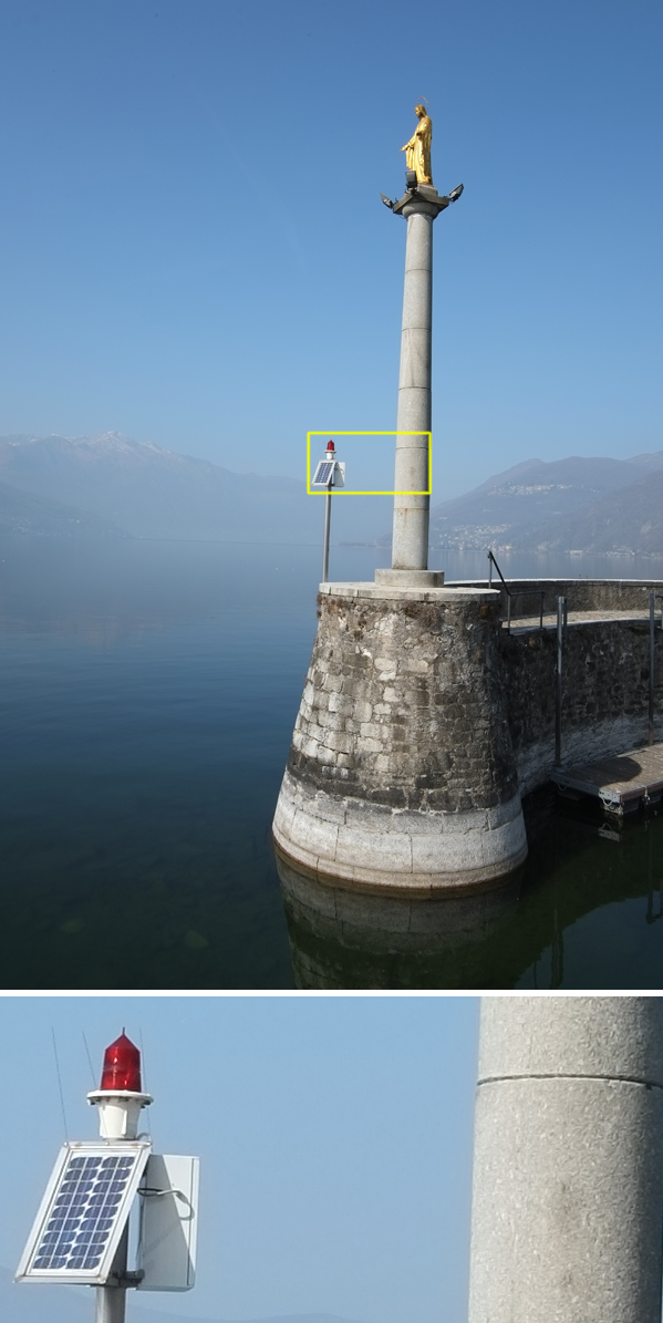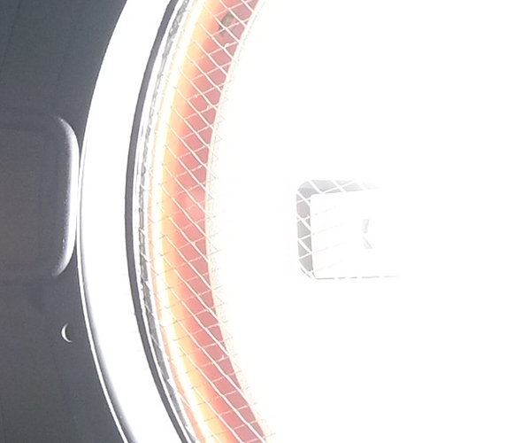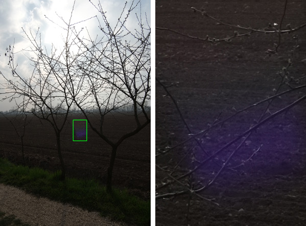 La differenza appare più evidente in caso di contrasti davvero estremi: puntando ad esempio la fotocamera direttamente verso uno dei nostri faretti, si può vedere come l'intervento del sistema di aumento della gamma dinamica permetta di recuperare importanti dettagli addirittura all'interno della parabola che ospita la lampada.