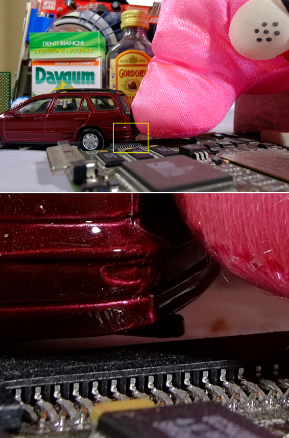 Chi arriva dal mondo delle compatte potrebbe trovarsi deluso dalle capacità macro dell'obiettivo (che infatti non è caratterizzato da tale dicitura). La messa a fuoco minima alla distanza di circa 18cm unita alla focale grandangolare non offre grandi capacità macro: sfruttando però la buona risoluzione e l'ottima nitidezza del sistema è possibile ritagliare scatti con un buon rapporto di ingrandimento apparente per la visualizzazione a display o stampa di piccolo formato. Pagina 7 - Conclusioni