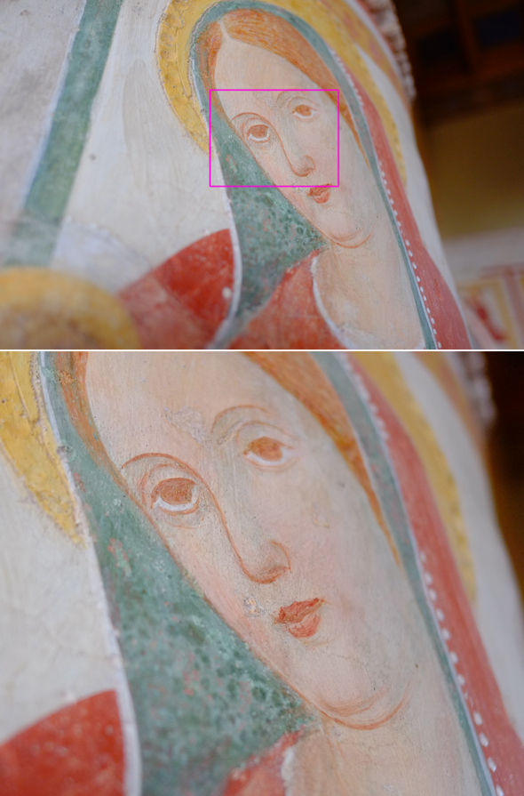 Da questo punto in poi la nitidezza al centro è decisamente ottima, anche se il rovescio della medaglia è la resa ai bordi, al di sotto della sufficienza anche a diaframmi più chiusi come F8. Chiariamoci: ce ne fossero di ottiche così nitide nella porzione centrale del fotogramma, il problema è che la resa ai bordi, messa a confronto con quella al centro sfigura in modo netto.
