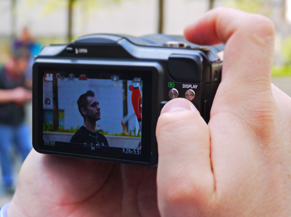 Il design rimane lo stesso, così come la soluzione di avere un flash pop-up GN6,3 nella calotta superiore arrotondata. Questa soluzione non mette a disposizione la slitta per flash esterni, appannaggio dei modelli di fascia superiore. Il display rappresenta una novità: si confermano la diagonale di 3" e il supporto touchscreen, ma la risoluzione passa da 460.000 a 920.000 punti, con un salto di qualità apprezzabile nell'utilizzo sul campo. Inoltre Panasonic ha dotato la macchina di una interfaccia ottimizzata per l'uso delle dita sul display.