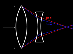 A livello fotografico tutto questo si traduce in soggetti dai bordi confusi; se sugli stessi bordi predomina una componente colore, in gergo si dice che la foto è affetta da color fringing. Lo stesso fenomeno è forse più noto con il nome di purple fringing poiché la componente rossa è più visibile e viene maggiormente accentuata dal rapporto di ingrandimento dell’obiettivo; nella pratica la causa che lo genera non è solamente la scarsa qualità dell’obiettivo, ma per determinati sensori, anche la presenza di microlenti sulla superficie degli stessi. Di conseguenza anche usando obiettivi di ottima fattura non si elimina del tutto la possibilità di incappare nel purple fringing anche perché il software della fotocamera fa la sua parte e può reagire in maniera diversa addirittura in scatti consecutivi. Il color fringing è un’aberrazione cromatica, poiché funzione del colore ovvero lunghezza d’onda; può essere ridotto utilizzando gruppi di lenti poste a valle della lente frontale che compensino, attraverso i propri indici di rifrazione, la deflessione dovuta dalla prima lente. Si dice che l’obiettivo è composto da lenti acromatiche o da coppiette-triplette apocromatiche. Un altro sistema è quello di costruire lenti con materiali a bassissima dispersione come la fluorite, ma obiettivi di questo tipo sono estremamente costosi.