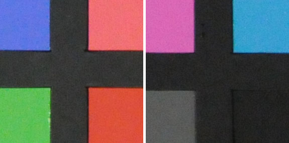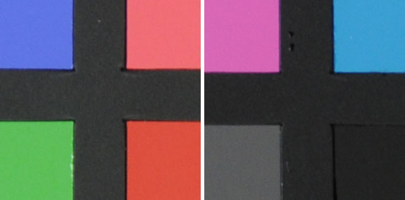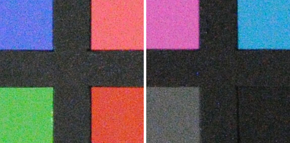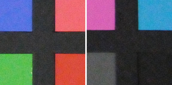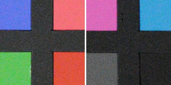 Prima di inserire gli scatti della carta Gretag-Macbeth per l'analisi del rumore, vi proponiamo uno scatto che da questo punto di vista ci ha favorevolmente impressionato: si tratta di una fotografia ripresa in teatro, scattando a 3200 ISO di sensibilità, con funzione di riduzione del rumore agli alti ISO attivata. Come si può vedere la gamma dinamica è ottima, il rumore appare soprattutto sotto forma di grana, mentre la comparsa di falsi colori è molto ridotta. L'algoritmo di contenimento del rumore abbassa il livello di dettaglio, ma il risultato è in ogni caso ottimo, soprattutto in ottica di stampa. L'algoritmo di riduzione del rumore può essere impostato su off e su tre valori di intervento. Nella modalità ISO-boost (sensibilità più alte di 3200 ISO) il sistema interviene in ogni caso, anche se in modo meno marcato della modalità 'moderata' il livello inferiore. Nella nostra serie di foto, i cui particolari sono riporrtati al 100%, è possibile apprezzare l'intervento del filtro anti-rumore alle alte sensibilità. L'algoritmo interviene molto bene sui falsi colori riducendo il rumore a una semplice grana e senza abbassare il livello del dettaglio in modo considerevole. Pagina 7 - Conclusioni