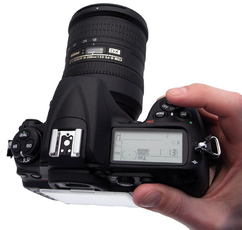 I pulsanti diretti a disposizione sono davvero tanti; molti risultano inoltre personalizzabili nelle funzioni, permettendo di adattare la fotocamera al meglio alle proprie esigenze. Nelle vicinanze della ghiera posteriore sono raggruppati i comandi che sovraintendono alla messa a fuoco e all'esposizione, con solo il comando della modalità di messa a fuoco (singola, continua , manuale) posta nella parte anteriore a sinistra del barilotto. Con il pollice è facile attivare e bloccare l'autofocus, bloccare l'esposizione e selezionare il metodo di misurazione dell'esposizione: spot, media ponderata al centro e matrix su tutto il fotogramma. Più in basso, con una corona concentrica al joystick e con un commutatore, è possibile impostare la modalità di lavoro dell'area autofocus. I comandi raggiungibili dal pollice sinistro riguardano invece la fase di revisione degli scatti e la navigazione all'interno del menu. La ghiera di modo scatto è invece sormontata dai pulsanti demandati, in accoppiamento alla rotazione delle ghiere, alla variazione dei parametri di bilanciamento del bianco, di sensibilità ISO e di qualità e formato delle immagini. L'indice o il medio della mano destra sono invece in grado di raggiungere i due tasti posti nella parte frontale, di default impostati per attivare l'anteprima della profondità di campo e l'attivazione del bracketing. A sinistra del pentaprisma trovano spazio il pulsante di alzata del flash e quello che, in accoppiamento alla rotazione della ghiera, ne regola i parametri.