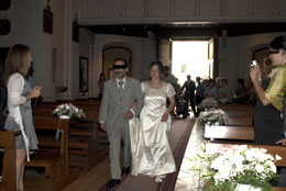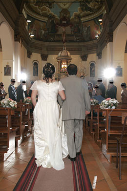 I soggetti principali di un matrimonio sono gli sposi, è altresì vero che alla cerimonia non partecipano solo loro e che passato un po’ di tempo da quel giorno unico è piacevole rivedere le persone che hanno condiviso con i coniugi quel momento. Da questa considerazione nasce l’attenzione che dovete porre nello scattare sia allo sposo ed alla sposa, sia l’attenzione che dovete avere nel cogliere i sorrisi e le lacrime degli invitati. Il lavoro che vi aspetta è quindi duplice e vi impone di effettuare delle scelte tecniche che vi permettano di poter scattare tranquillamente da ogni punto del luogo in cui si celebrerà la cerimonia. Le riprese in chiesa sono da sempre quelle più problematiche a riguardo poiché l’ambiente è molto ampio e spesso è scarsamente illuminato.Effettuare un sopralluogo aiuta molto a migliorare la qualità finale della foto, fate qualche scatto di prova e chiedete al sacrestano di accendere le luci per voi qualche minuto. Un accortezza da consigliare è quella di lavorare sempre con il flash a slitta attivo: questa non è una regola ferrea ma vi permetterà di fotografare con sensibilità non superiori agli 800 ISO, potrete essere sicuri di ottenere un esposizione uniforme del primo piano, aspetto fondamentale poiché la maggior parte delle riprese saranno dei ritratti o delle scene di gruppo e non potete permettervi di perdere uno scatto perché affetto da micromosso o perché la grana dei mezzitoni è talmente elevata da perdere definizione. La soluzione ideale è quella di ricreare una illuminazione uniforme in tutto l’ambiente, questo potete farlo aggiungendo dei punti luce ai lati dell’altare rivolti verso l’assemblea, oppure ai lati della navata al centro della chiesa.
