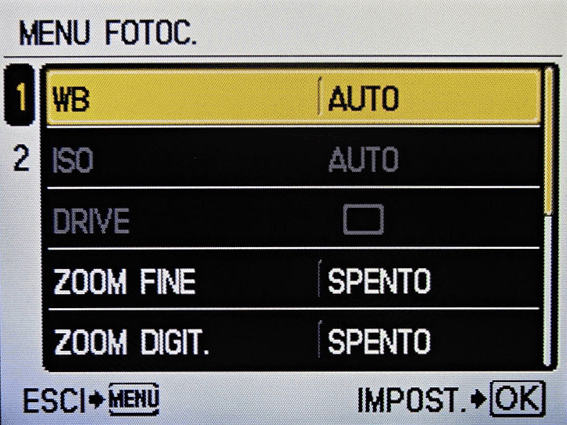 Senza dover accedere al menu, è possibile controllare le impostazioni relative a bilanciamento del bianco, sensibilità ISO, modalità di scatto, lettura esposimetrica e qualità di immagine direttamente dalla barra laterale che viene richiamata premendo il tasto OK al centro del DIAL.