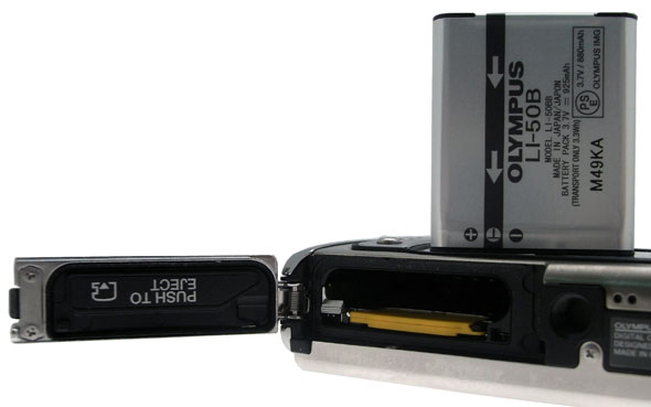 Le bordature del pannello sono costituite da guarnizioni plastiche. La parte inferiore della mju-8000 presenta l'innesto filettato per attacco a cavalletto e lo scomparto batteria e scheda di memoria. Il coperchio del vano batteria e memoria è corredato da guarnizioni in gomma sulla battuta interna. La chiusura a baionetta previene aperture accidentali.
