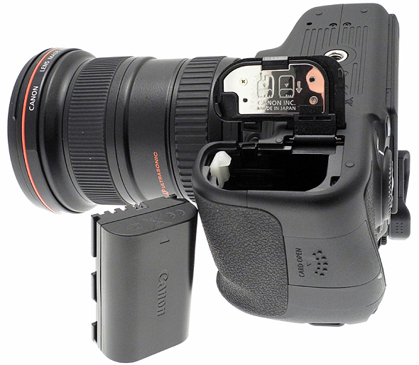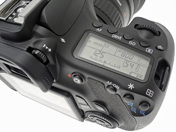 Sul lato opposto del pentaprisma troviamo l'altra piccola novità: la ghiera dei modi è ora dotata di pulsante centrale di sblocco, per evitarne l'azionamento accidentale, ad esempio quando si porta la fotocamera a tracolla ed essa sfrega contro il corpo. La novità è stata accolta da alcuni con scetticismo, ma deve aver conquistato invece il favore di molto appassionati Canon, tanto che il marchio nipponico ha deciso di offrire come aggiornamento a pagamento l'installazione di un elemento dalle stesse caratteristiche sulle reflex EOS 7D ed EOS 5D Mark II.