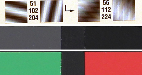 Demandando anche in questo caso i margini di intervento del filtro di Noise Reduction alla pagina dedicata, vi proponiamo qui sopra quattro diversi approcci: il file JPEG scattando senza filtri di riduzione del rumore attivati, due immagini del file RAW sviluppate con DPP con approcci differenti e l'elaborazione in Photoshop con il filtro Dfine della suite Nik Software di uno dei due, quello in cui era stato scelto l'approccio indirizzato al maggior dettaglio. Pagina 6 - Qualità dell'immagine - Analisi mire ottiche