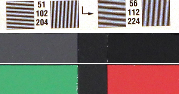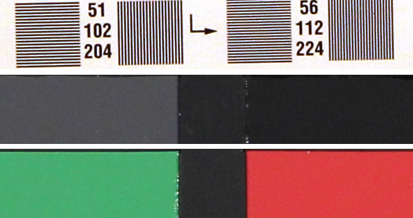 Per avere un'idea della gestione del rumore operata dalla macchina vi proponiamo in questa pagina i particolari degli scatti effettuati con le mire ottiche: le mire per la misura della risoluzione permettono di vedere il variare del dettagli al salire della sensibilità, mentre le campiture di colore uniforme offrono la possibilità di analizzare i falsi cromatismi. La prossima pagina mette invece a confronto una scena fissa, in cui analizzare il comportamento della macchina in una situazione più 'reale'. Qui sotto trovate lo stesso set di immagini ripreso con algoritmo di riduzione del rumore regolato su Standard a tutti i valori di sensibilità permessi dalla macchina, con passo di regolazione pari a 1 EV.