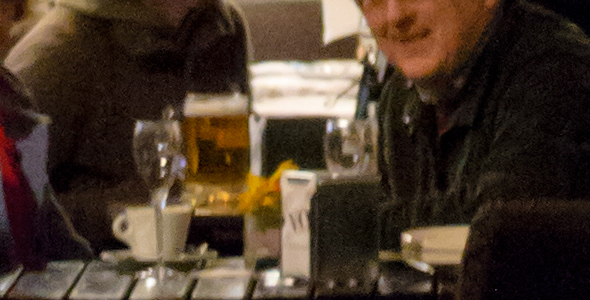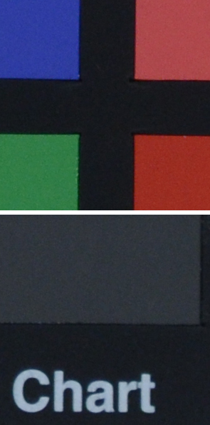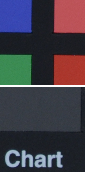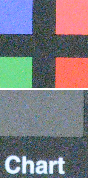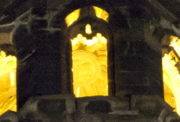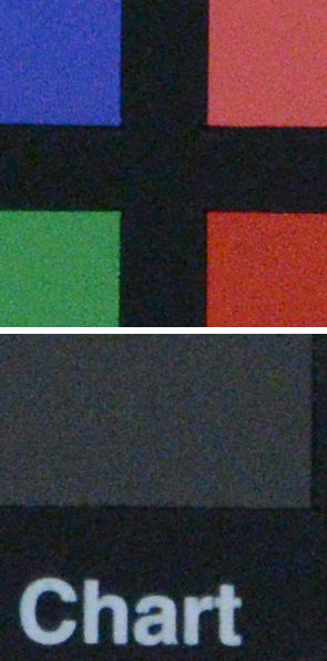 A partire dal valore di 1600 ISO l'intervento dell'algoritmo di contenimento del rumore è evidente: il lavoro svolto per contenere l'insorgenza dei falsi colori è molto buono, così quello per contrastare la grana. Al valore estremo di sensibilità è evidente come il sistema provi a spalmare il rumore, dimostrando comunque una buona capacità di riconoscere i dettagli. Questo è evidente maggiormente analizzando le mire con i dischi di Siemens.