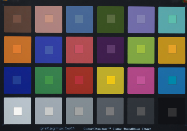 Qui sopra abbiamo messo a confronto la foto del ColorChecker, ripresa con il bilanciamento del bianco impostato su Incandescenza, con la ricostruzione della mira Gretag Macbeth operata da BabelColor nello spazio colore sRGB (quello con cui abbiamo scattato anche la foto): la ricostruzione converte nello spazio colore sRGB le coordinate dei colori che compongono la carta ColorChecker e ne offre una rappresentazione grafica facilmente confrontabile. La mira ColorChecker è stata creata con colori fondamentali, scala di grigi e colori tipici delle scene più diffuse (come cielo, incarnato, fogliame e via dicendo) per avere un metamerismo simile alle situazioni reali e rappresenta un buon campione per mettere alla prova in ambiente controllato il comportamento della macchina Abbiamo inserito la ricostruzione virtuale della mira sotto forma di piccoli quadrati nella foto ripresa in laboratorio, a cui abbiamo applicato un filtro Noise->Median->15px per uniformare il colore di ogni quadrato e ottenere quindi una campitura di colore uniforme che fosse la media tra i diversi pixel di quella zona. La riproduzione dei colori è abbastanza fedele, solo i toni del giallo vedono una differenza abbastanza marcata, segnale che, nonostante il preset lavori molto bene, l'illuminante con tonalità calda mette un po' in difficoltà il sistema. Pagina 9 - Considerazioni finali