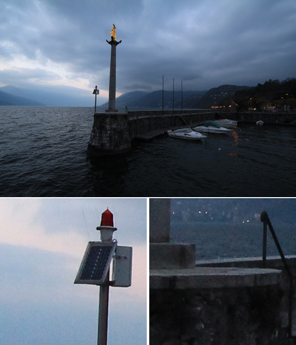 Alzando ulteriormente la sensibilità a 6400 ISO si incontrano ulteriori limiti, ma stupisce la bontà delle immagini in alcune situazioni d'utilizzo: se le superfici morbide e ricche di sfumature, come un cielo al crepuscolo, mettono in evidenza il rumore sia cromatico sia in luminanza, una scena urbana lascia molto soddisfatti, in particolare nella resa di dettagli come una vetrina illuminata. In quest'ultima foto la compensazione dell'esposizione pari a -1EV ha permesso di preservare tutti i dettagli della gioielleria illuminata, mettendo anche in evidenza come la gamma dinamica si mantenga molto buona anche a questi livelli di sensibilità. Il passaggio al livello di sensibilità superiore oltre a comportare un aumento del rumore vede diminuire le prestazioni anche in questo senso.