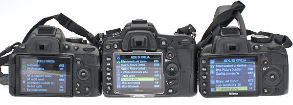 Il monitor integrato è in tutti e tre i casi da 3", ma D3100 utilizza un pannello a più bassa risoluzione (230k punti) mentre le sorelle maggiori vedono la presenza di un display VGA da 921k punti, nel caso di D5100 dotato anche di snodo. A livello di batteria le due sorelle minori sono accomunate dallo stesso accumulatore EN-EL14, mentre su D7000 la scelta è caduta sul modello EN-EL15. Con batteria e scheda di memoria le fotocamere pesano rispettivamente 505, 560 e 780 grammi. Pagina 3 - Impressioni d'uso