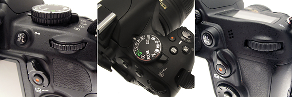 Peso e ingombro delle due entry level sono molto simili, così come la filosofia d'uso, mentre nel caso di Nikon D7000 ci si accorge subito di trovarsi di fronte a un prodotto di categoria superiore. Nikon D3100 e D5100 sono pensate anche per quel pubblico che fa ampio uso degli automatismi (anche chi ruota la ghiera su auto e si limita a inquadrare e scattare, senza preoccuparsi dei parametri scelti dalla macchina) e che si trova spiazzato da un numero troppo ampio di pulsanti, mentre la sorella più grande strizza chiaramente l'occhio a chi vuole avere tutte le impostazioni a rapida portata di mano per le regolazioni manuali. Un esempio è rappresentato dal maggior numero di tasti scorciatoia. Un altro esempio è il display LCD sulla calotta, utile per avere sempre sott'occhio tutti i parametri di scatto.