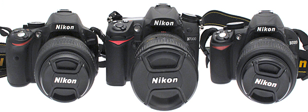 Una delle differenze tecniche più evidenti è la scelta di un mirino reflex a pentaspecchio per le due entry level e invece di un mirino a pentaprisma, con maggiore copertura e ingrandimento, per Nikon D7000. Differente anche il sensore di lettura esposimetrica, caratterizzato da 420 pixel per le due entry level e 2016 pixel per la media. Altra specifica tecnica per i palati più fini è il tempo di posa fino a 1/8000 di secondo, contro 1/4000 delle sorelle minori. Simile approccio anche per l'autofocus: le due entry level adottano il sistema Multi-CAM 1000 a 11 punti, contro i 39 punti del modulo Multi-CAM 4800DX di Nikon D7000. Differente anche la raffica pari a 3fps per D3100, 4fps per D5100 e 6 fps per D7000. Nikon D3100 si fa notare per la mancanza del Bracketing.