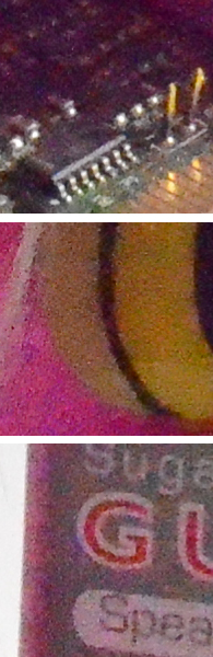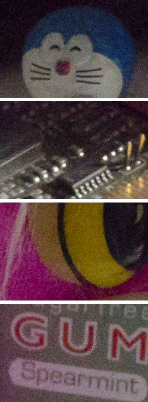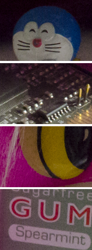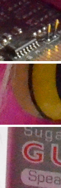 Pagina 5 - Immagini di laboratorio a confronto: NR ON Analizzando le immagini con algoritmo di denoising alle alte sensibilità attivato e non è evidente il deciso salto generazionale avvenuto tra Nikon D80 e Nikon D90, in un momento storico in cui l'attenzione del pubblico ha cominciato a spostarsi in modo deciso verso la resa agli agli alti ISO come termine di giudizio. Il confronto tra Nikon D90 e Nikon D3100 vede una sostanziale parità, con solo piccole differenze riscontrabili nell'analisi delle immagini al 100%. Dalla sua D3100 ha il vantaggio di spingersi fino a 12800, ma pagando un dazio molto pesante e rendendo le immagini al limite dell'utilizzabile. Interessante il confronto tra Nikon D5100 e D7000, accreditate di un sensore pressoché identico: fatte salve le unicità che contraddistinguono ogni singolo sensore (potremmo riscontrare differenze visibili tra due esemplari dello stesso modello) sembrerebbe eeserci un'elaborazione migliore da parte della prosumer, orientata a sacrificare un po' di grana a favore di un maggiore dettaglio.