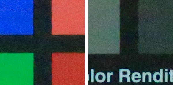 Tra 100 e 1600 ISO le sensibilità sono utilizzabili in modo completamente intercambiabile a seconda delle esigenze, ma anche a 3200 ISO il calo qualitativo è percepibile solo ad occhi veramente attenti. A 6400 ISO le zone più scure dell'immagine vedono l'insorgenza di una grana leggera e di qualche falso colore, ma considerata la risoluzione di 24 megapixel si tratta di rumore visibile solo in stampe di grande formato o di ritagli molto spinti. Impostare la modalità Auto ISO su 100-3200 ISO, ma anche spesso su 100-6400 ISO non è dunque un problema. Qui sotto una serie di particolari al 100%.