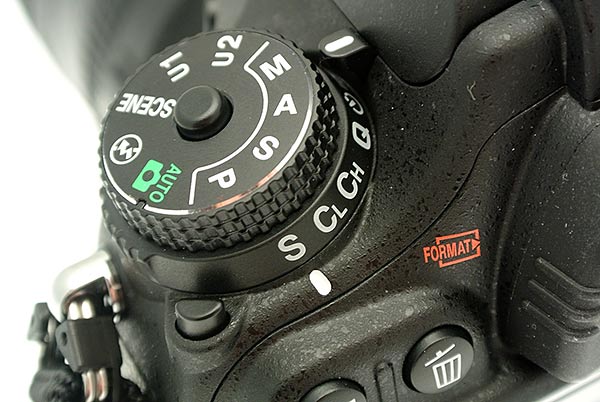 Avvicinarsi a Nikon D600 effettivamente incute meno timore reverenziale rispetto a quello creato dalla sorellona Nikon D800 e ancora di più da prodotti come Nikon D4: da questo punto di vista Nikon posiziona giustamente D600 in cima alla lista delle sue reflex consumer. L'impostazione dei tasti e le forme sono simili a quelle di Nikon D7000: salvo la già citata inversione dei comandi zoom + e - il passaggio tra le due fotocamere è totalmente indolore. Sebbene sia una full frame non manca sulla ghiera dei modi (dotata di pulsante di blocco) la modalità Auto ed è simile a D7000 anche la ghiera concentrica per la selezione del modo di scatto.