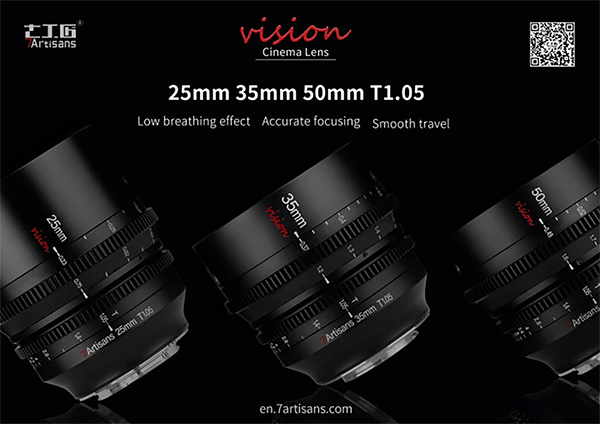 Nascono cosė i tre obiettivi 7Artisans Vision 25mm, 35mm and 50mm T1.05 Cinema Lenses, versioni cine dei corrispondenti F0.95 fotografici. Le ottiche coprono il formato APS-C e sono disponibili con molti innesti: Sony E, Fujifilm X, Canon RF e Micro Quattro Terzi.