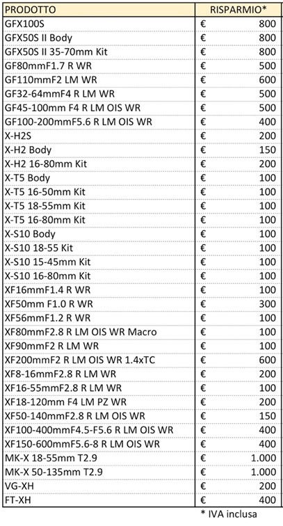 In questo caso è Fujifilm Italia a mettere in campo le promozioni più interessanti, offrendo cashback molto sostanziosi su diversi modelli e ottiche, sia della gamma GFX, sia della famiglia X.