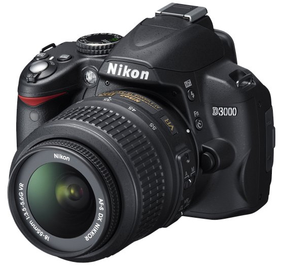 Equipaggiata nel kit standard con l'obiettivo AF-S DX NIKKOR 18-55mm f/3.5-5.6G VR, la Nikon D3000 offre un flash integrato con numero guida 12 e punta su uan Guida utente molto completa per permettere anche ai neofiti di avvicinarsi alla fotografica reflex. Nikon dichiara la compatibilità con gli obiettivi NIKKOR AF-S e AF-I e un prezzo per gli USA per il kit standard di 599 USD.