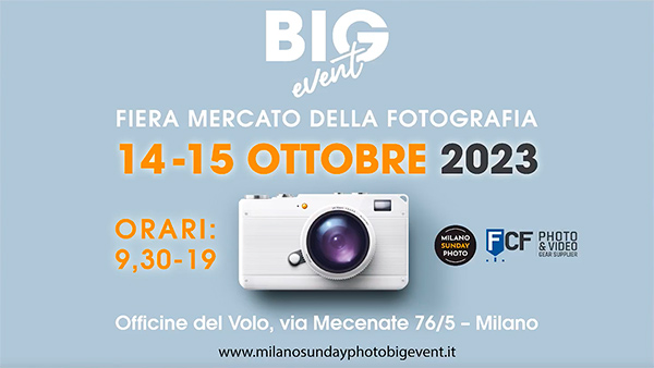 L'evento si svolgerà sabato 14 e domenica 15 ottobre 2023 alle Officine del Volo (ex Officine Aereonautiche Caproni) in via Mecenate 76/5 dalle 9.30 alle 19.00 e vuole essere anche un'occasione per avvicinare anche chi non ha una dichiarata passione per la fotografia, visto che Big Event vuole essere anche una grande festa, con performance, musica dal vivo e anche la possibilità di sedare l'appetito con proposte di street food.