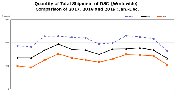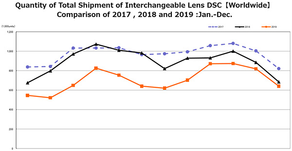 Anche rispetto ai dati del 2018, che già aveva fatto segnare un record negativo, le vendite del 2019 dimostrano le difficoltà del mercato: il numero di unità spedito è infatti calato del 24%. Sono soprattutto le reflex a soffrire di più, con un calo pari a un terzo dei volumi rispetto al 2018 (-33,6%). Nelle misurazioni a volumi calano anche compatte (Fixed Lens Camera) con un -22,9% e le mirrorless, che fanno segnare un più contenuo -10,2%.