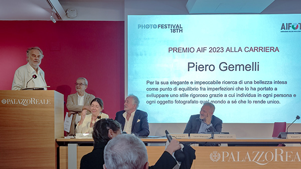 Il Premio AIF 2023 alla Carriera è attribuito a Piero Gemelli, per la sua elegante e impeccabile ricerca di una bellezza intesa come punto di equilibrio fra imperfezioni che lo ha portato a sviluppare uno stile rigoroso grazie a cui individua in ogni persona e ogni oggetto fotografato quel mondo a sé che lo rende unico.