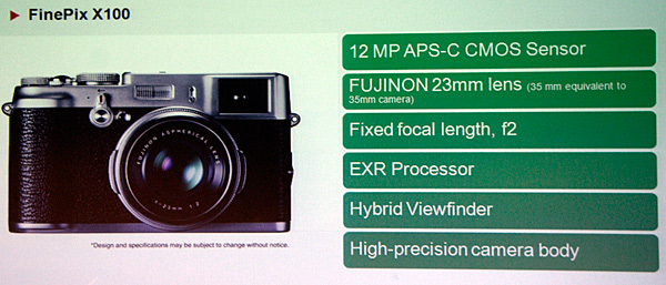 Proprio questo concetto è quello che è alla base della nuova Fujifilm FinePix X100, dotata di sensore CMOS APS-C da 12 megapixel in accoppiata a processore d'immagine EXR, offre un'ottica Fujinon da 23mm (circa 35mm equivalenti) con apertura massima di diaframma f/2. In un corpo dallo stile vintage la FinePix X100 integra un mirino definito Hybrid Viewfinder, accoppia un mirino ottico galileiano con cornici luminose e un mirino elettronico, tra i quali è possibile passare con il semplice tocco di un bottone, senza spostare l'occhio dal mirino.