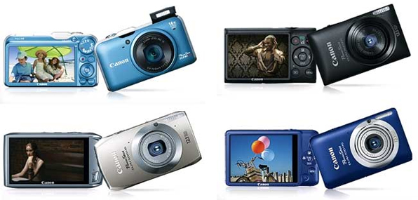 La gamma IXUS vede invece l'ingresso di ben tre nuovi modelli, tutti basati sul sistema Canon HS con sensore da 12,1 megapixel. Canon IXUS 310 HS, che offre interfaccia touchscreen e un obiettivo zoom 4,4x grandandolare e luminoso da 24mm di focale equivalente e f/2.0 di apertura massima. Obiettivo da 24 millimetri equivalenti anche per il modello IXUS 220 HS, con zoom ottico 5x. Si posiziona come entry level del segmento IXUS il modello 115 HS che completa la gamma. Queste fotocamere offrono tutte supporto ai filmati Full HD e si posizionano a prezzi compresi tra 196 e 326 euro.