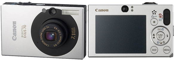 Sensore di pari formato e risoluzione anche per le novità della serie IXUS, equipaggiate anch'esse inoltre dal processore DIGIC III. Anche in questo caso le due fotocamere condividono diverse specifiche tecniche. La IXUS 75 sfoggia un display da ben 3", per la visualizzazione delle immagini e per il puntamento, mentre la IXUS 70 pur avendo un display più piccolo (due pollici e mezzo) guadagna per il puntamento un mirino ottico.