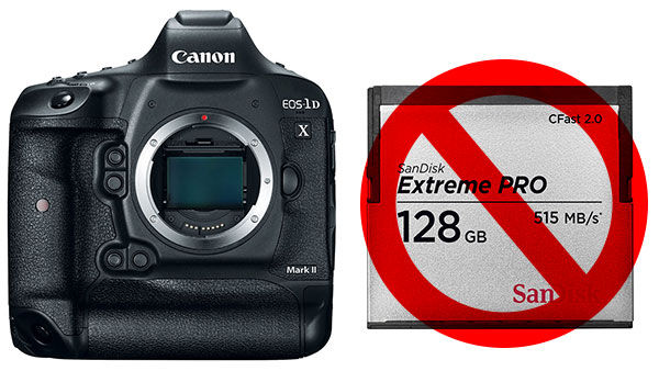 Canon ha rilasciato una nota ufficiale per confermare alcuni problemi i corruzione delle immagini utilizzando schede CFast Sandisk con l'ammiraglia full frame Canon EOS 1D-X Mark II. La fotocamera adotta un doppio slot Compact Flash e CFast, il secondo è quello che garantisce le migliori prestazioni sul fronte della raffica: utilizzando le schede del nuovo e veloce standard la macchina è in grado di realizzare una raffica illimitata di immagini JPEG o 170 immagini RAW in modalità scatto continuo ad alta velocità (12 secondi a 14fps circa). Sembra però che per un po' la fotocamera dei possessori di schede Sandisk non possa operare al meglio delle sue possibilità in quanto se viene inserita una scheda SanDisk CFast nella fotocamera o in un lettore di schede, la parte inferiore dei fermi immagine registrati appare anomala.